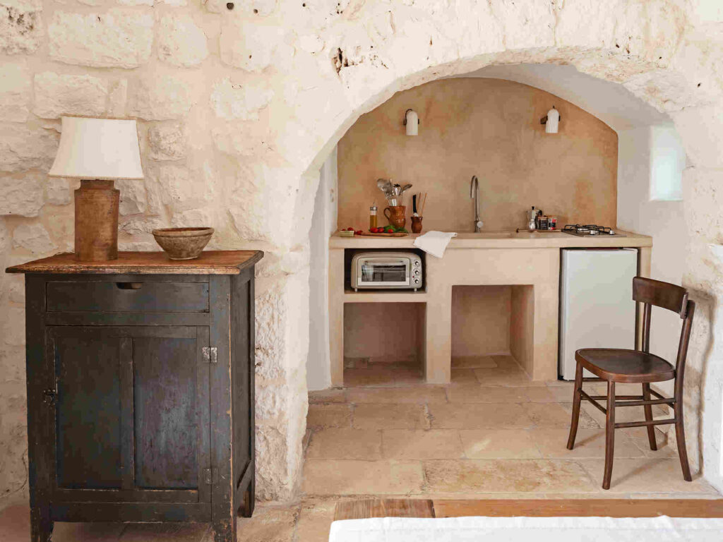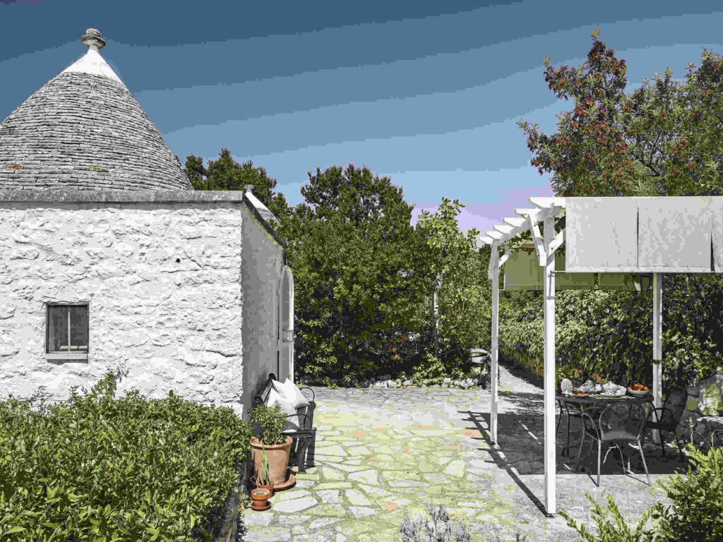 Ogni Trullo è come una piccola casa a sé stante, composta da: bagno, camera da letto, tv, frigorifero, terrazza privata con gazebo per mangiare all’aperto e un angolo cottura personale all’interno del Trullo.